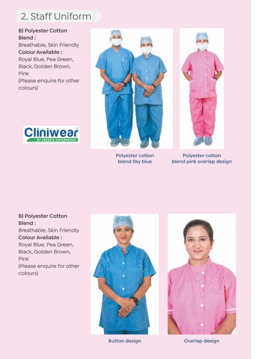 We, Prerita Enterprises, introduce ourselves as a harbinger of high quality medical textile manufacturer with Food and Drug administration (F.D.A.) licensing and ISO 13485:2016 medical devices certification. Our state-of-the-art production facility is located on a 6,000 sq.ft. systematically planned and maintained plot at Shirala M.I.D.C. Our collective experience in medical science is about 40 years. Our mentors Dr. Prakash Durgawale and Dr. Pushpa Durgawale have served in medical education for about 30 years in various capacities across Maharashtra. Our Promoters Dr. Pratik Durgawale (Ph.D molecular Biology, M.S. Biotech from U.S.A.) and Dr. Trupti Durgawate (Ph.D., Pharmacology) have worked closely with health care providers for about 10 years and understand their requirements. Our collective network of healthcare providers ranging from surgeons to nursing staff, good rapport with hospital administrators and, the ability to fulfill requirements time gives us an edge over our competitors in the market. We aim to serve the healthcare providers with high quality products aiding in infection control without compromising on effectiveness and comfort of the user. We use scientifically appropriate high quality raw material which is tested before going into production. Disposable non-woven products are steritized with ethylene oxide (E.T.O.) in-house and bear a sterilization marker on the packing used with adoption of GMP the systems and Procedures followed ensure no compromises are made in maintaining hygienic conditions We providescrubsuits, doctors’apron, nurses’uniform, and other medicalparments as per the user‘sexpectations. Our customers can choose from a palette of fabric varieties, patterns, designs and embroideryoptions